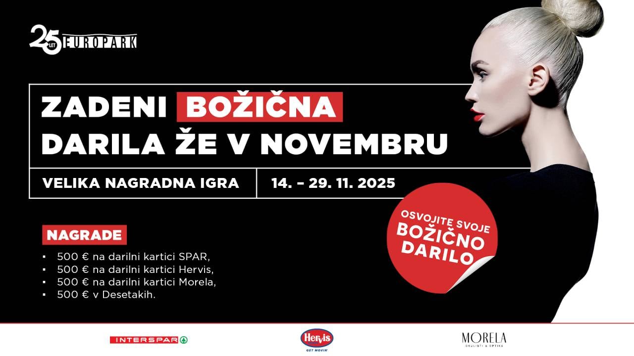 Vse do 29. novembra lahko vsi, ki v mariborskem Europarku opravijo nakup v vrednosti 30 evrov ali več, sodelujejo v nagradni igri za sanjske nagrade, kot so darilni boni Desetak in darilne kartice SPAR, Hervis in Morela v vrednosti 500 evrov.