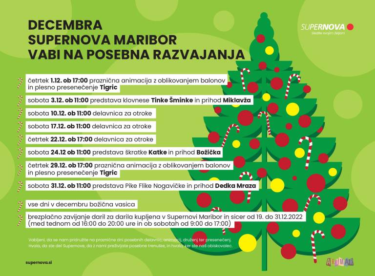 Veseli december je tik pred vrati in že se čuti posebno praznično vzdušje. Pridružite se Supernovinim prazničnim dnevom veselih delavnic, animacij, druženj in presenečenj.