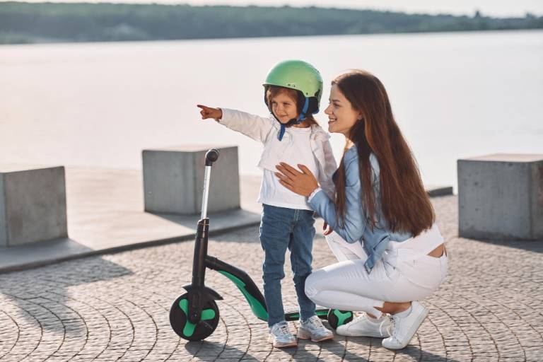 - imajo otroci čelado, ščitnike za zapestja in kolena, ki jih zaščitijo v primeru padcev.
