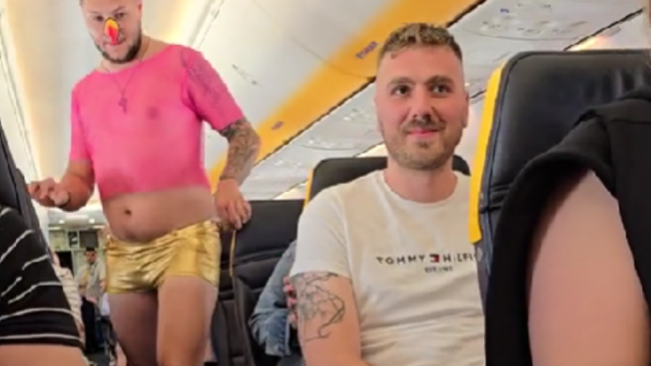 Ekipa je namreč na fantovščini prisilila ženina, da se je oblekel v damska oblačila in se mimo potnikov sprehodil v zlatih petah.