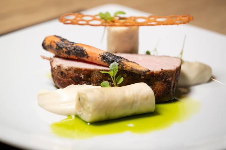Lahko boste delili trenutke v dvoje v okusnih grižljajih - ena izmed jedi, ki jo bodo predstavili na večeru, je telečji hrbet, ki ga spremljajo skutni štruklji s pehtranom, pire pastinaka, ožgan mladi korenček in sveže granatno jabolko, ob tem pa še cel nabor krožnikov, zaradi katerih bodo vaše brbončnice poplesavale!