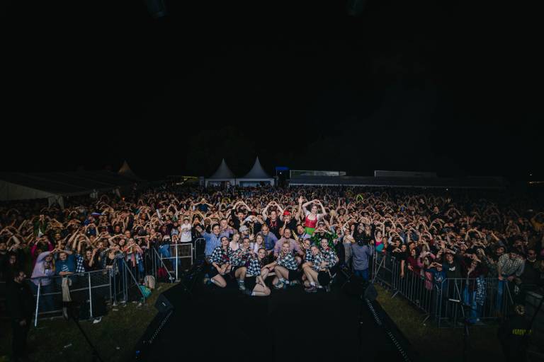 »Napovedali smo najbolj odpičen prihod na oder do sedaj in obljube smo se držali,« so po spektaklu v osrčju slovenskih gora povedali glasbeniki.