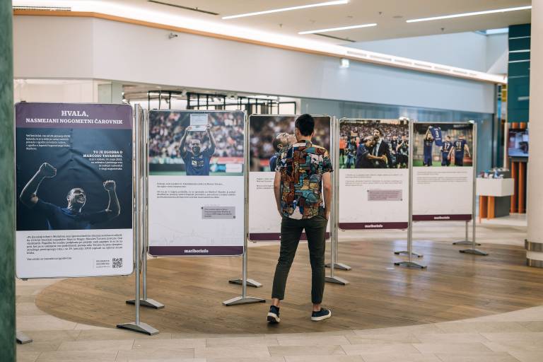 Razstava 21 fotografij in zgodbo Hvala, nasmejani nogometni čarovnik s Tavaresove poslovilne tekme, bo v Europarku Maribor na ogled vse do ponedeljka, 6. junija 2022, v prvem nadstropju nasproti trgovine Peek&Cloppenburg.