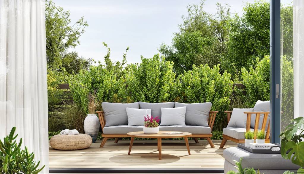 Vaša terasa se lahko spremeni v drugo dnevno sobo, pomembna pa je izbira udobnega sedežnega pohištva. Pozabite na klasične plastične stole in raje izberite vrtne sedežne garniture ali gugalne stole z mehkimi oblazinjenimi blazinami.