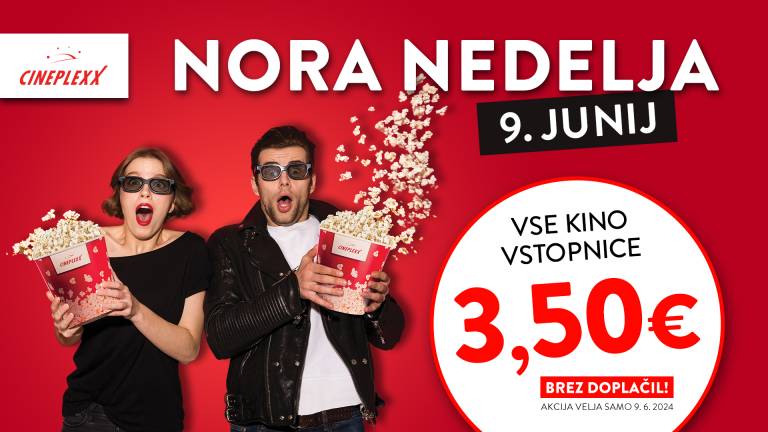 V vseh Cineplexxih bo samo v nedeljo, 9. junija, cena vseh kino vstopnic le 3,50 evra. Obiskovalce čaka pester nabor filmov za vse filmske okuse. Vstopnice za nedeljski kino predstave so že v prodaji.