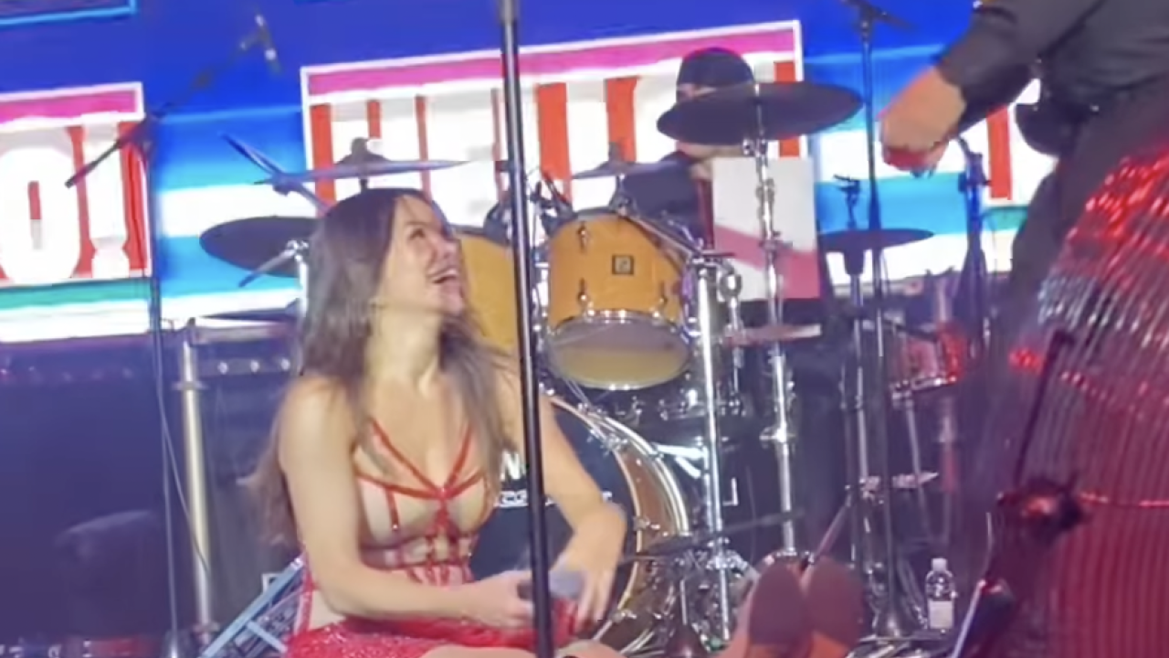 Priljubljena hrvaška zvezdnica se je nerodno zapletla, spotaknila in telebnila na tla - nato pa ji zaradi navala smeha takoj niti ni uspelo nadaljevati petja.