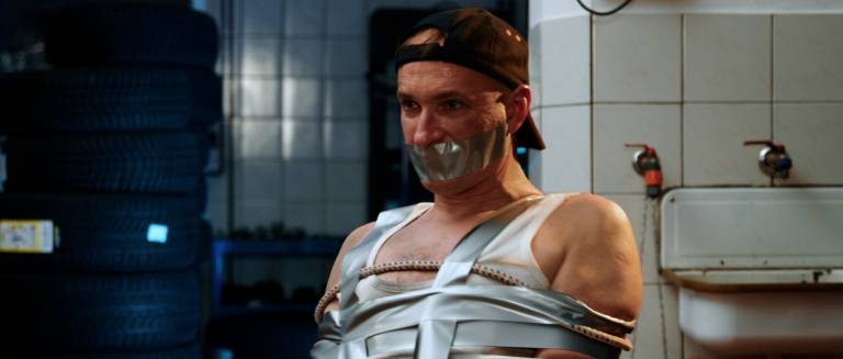 »Res smo ga trdno zvezali z lepilnim trakom in ko se je premikal, ga je cukalo za dlačice in pravi, da ga je bolelo, ampak mu je bila vloga všeč, zato se je za potrebe snemanja vseeno uspel smejati.«