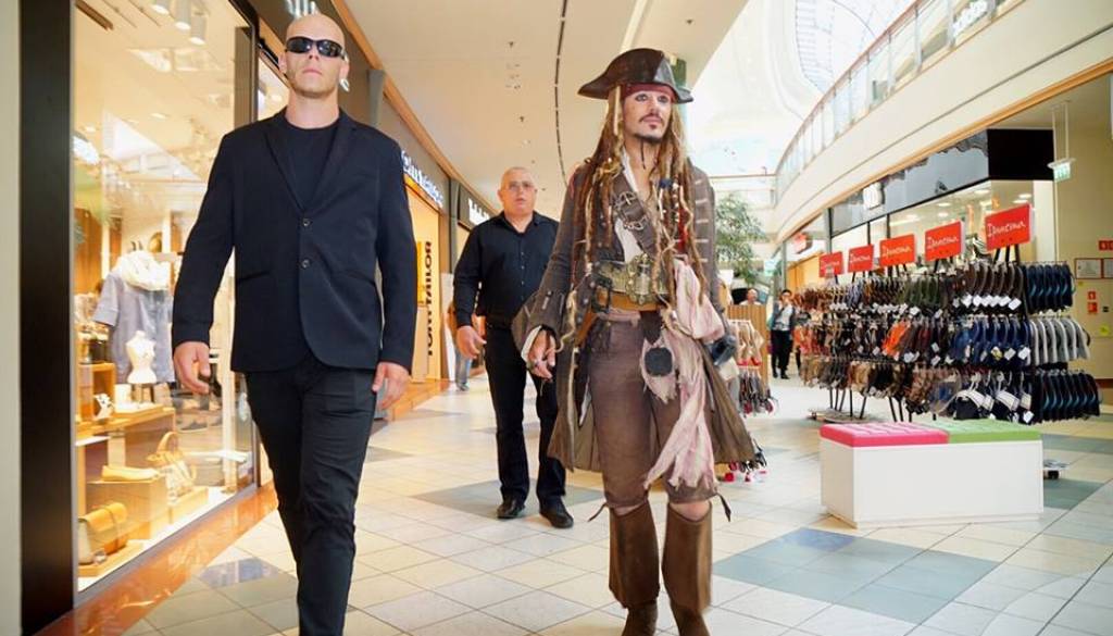 Zvezdnik filma Jack Sparrow pa je ob tej priložnosti Maribox tudi obiskal - takole se je še pred nekaj trenutki sprehajal po Europarku.