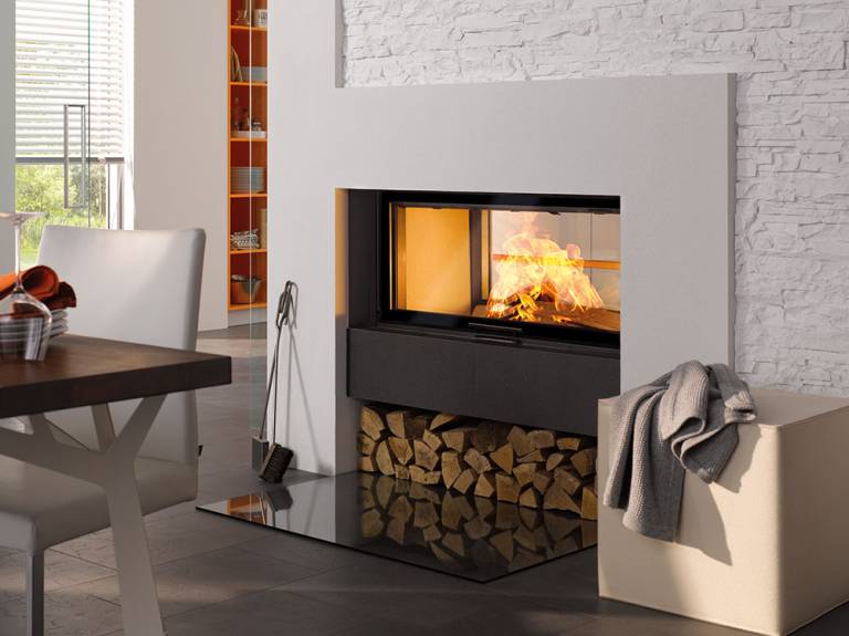 - Tunelska zasteklitev: Gre za unikatno zasnovo kamina, pri kateri je kaminski vložek zastekljen z dveh strani in ima tudi dvoje vrat. Ta vrsta kamina je namenjena postavitvi v predelne stene, zato ponuja edinstvene rešitve povezovanja bivalnih prostorov s prijetno atmosfero in toploto.