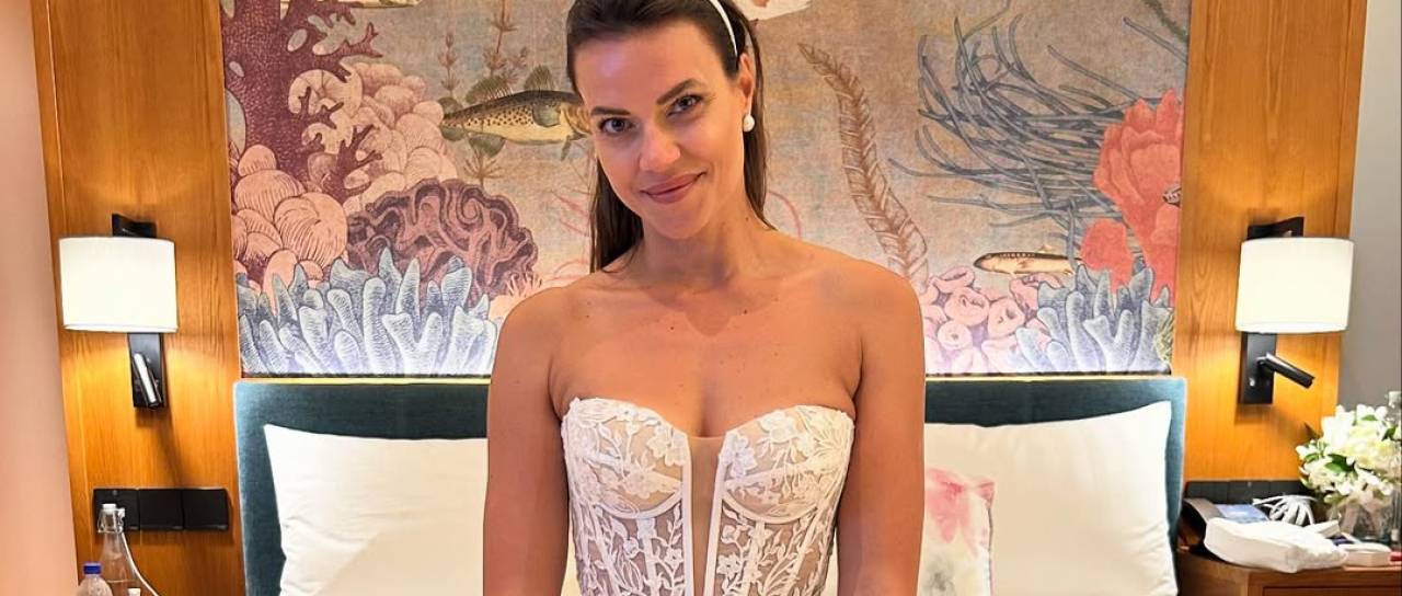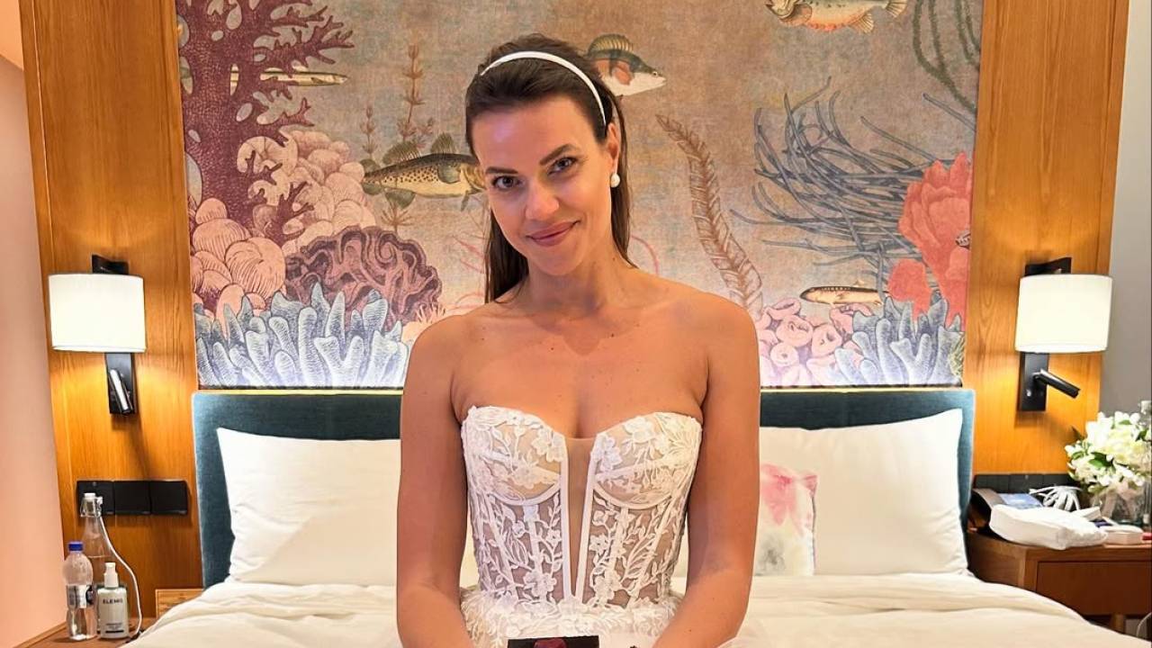 Na svojem profilu na Instagramu je objavila dve čudoviti fotografiji, na katerih pozira v elegantni poročni obleki s čipkastim korzetom in širokim tilastim krilom. V rokah drži krožnik z rojstnodnevno tortico.