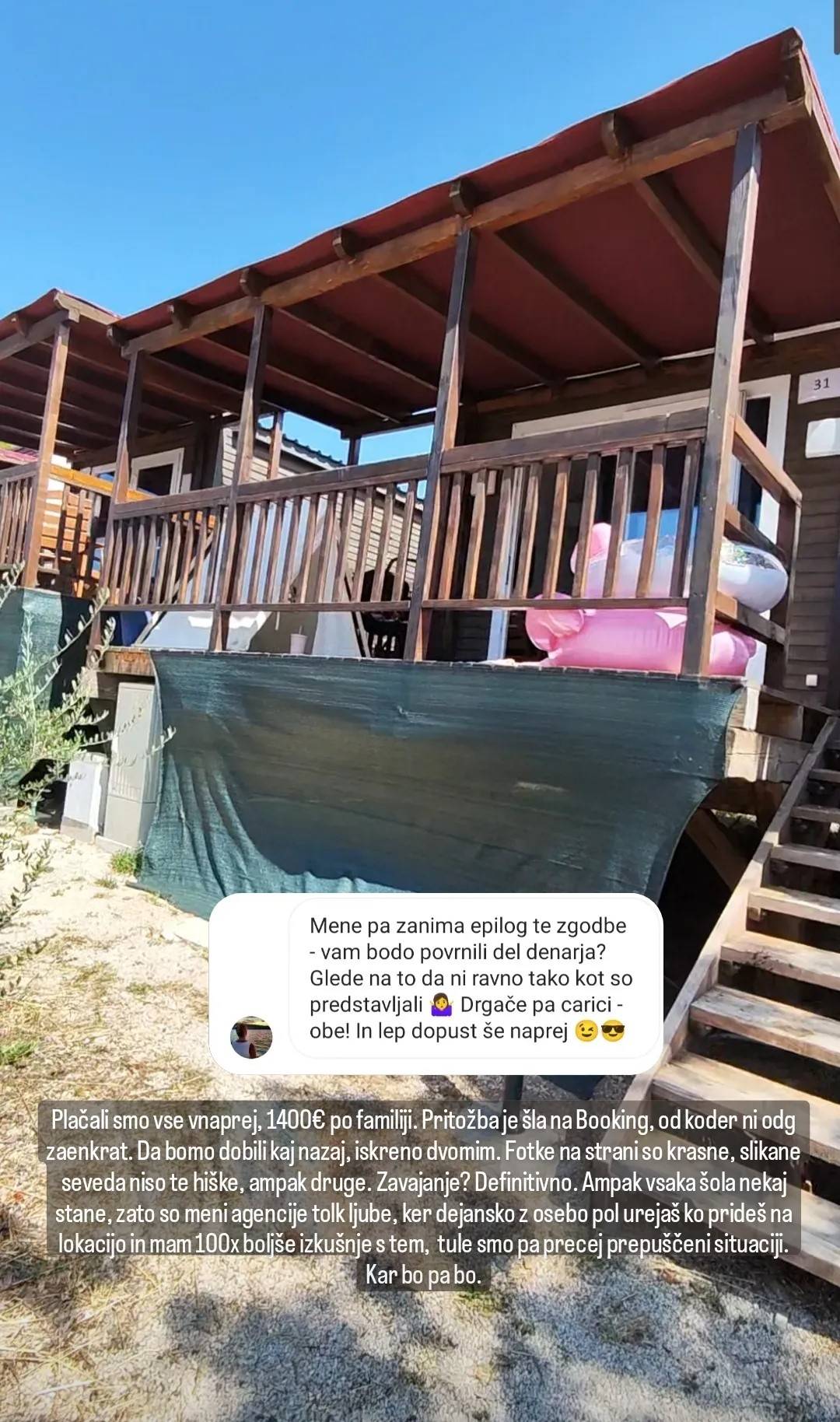 Vita in Mateja sta z družinama v hrvaškem kampu Miran preko Bookinga rezervirali dve mobilni hišici, za vsako pa odšteli 1400 evrov na teden.