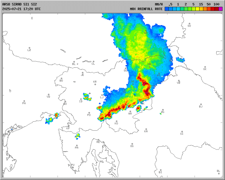 Pozno popoldne je tako nad zahodno Slovenijo vzdolž meje z Italijo nastalo več močnejših neviht, ki se hitro pomikajo proti vzhodu/severovzhodu. Zajele so že Gorenjsko in osrednjo Slovenijo. S seboj nosijo močne sunke vetra, nalive, udare strel, lokalno tudi točo.