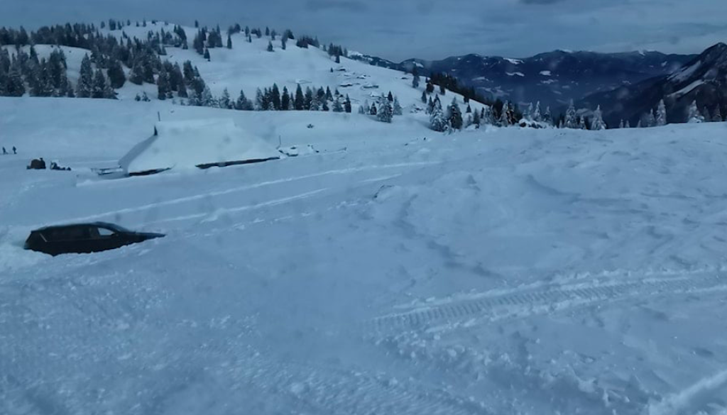 Na Veliki planini je snežna odeja trenutno debela okoli 40 centimetrov. Med debelo snežno odejo pa se je znašlo tudi vozilo, katerega lastnik je ravnal zelo neodgovorno.