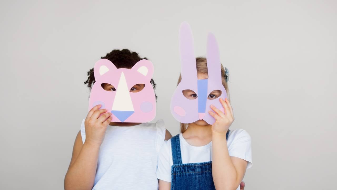 Karton lahko uporabite tudi za izdelavo različnih mask, na primer mačke ali tigra. Izrežite obliko maske, jo pobarvajte in dodajte elastični trak za pritrditev okoli glave.