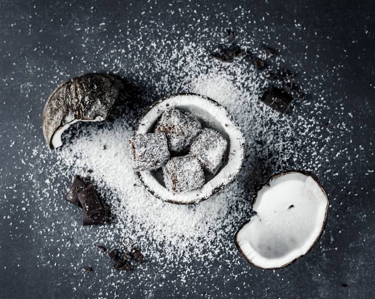 Pri izdelavi kokosovih kock oziroma pri izdelavi biskvita del tekočine zamenjamo z muškatno penino, kocke prelijemo s čokolado in izdatno povaljamo v kokosovi moki.