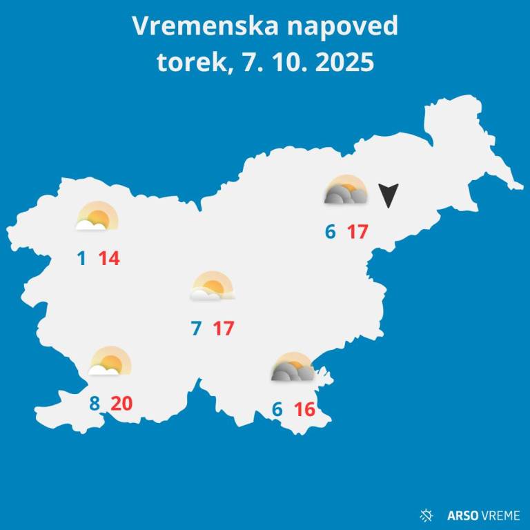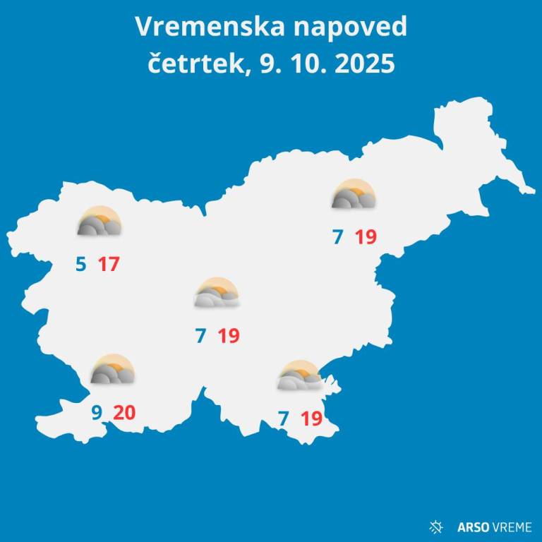 Po današnji jutranji megli po kotlinah in rahlih padavinah na vzhodu se bo čez dan povsod delno razjasnilo, napovedujejo vremenoslovcu agencije za okolje. Na severovzhodu bo pihal veter severnih smeri.