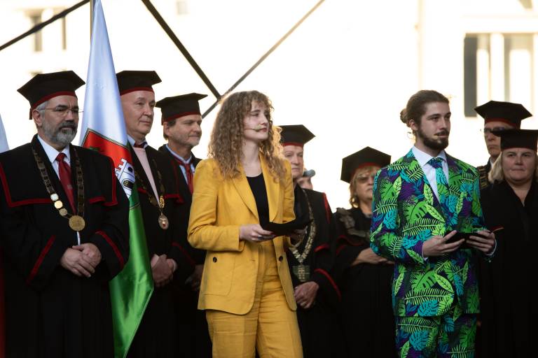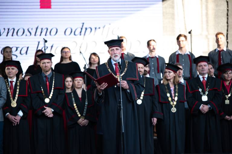 »Na Univerzi v Ljubljani se bomo trudili, da bo življenje z nami čim bolj prijetno, zadovoljujoče in navdihujoče. Želimo vam čim več uspehov pri študiju, raziskovanju in umetniškem delu ter veliko novega, zanimivega in uporabnega znanja,« se je glasil govor rektorja, ki je svoje besede že prej podal v pisni obliki.