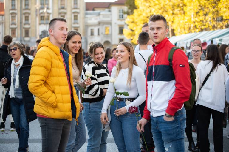Na Kongresnem trgu se je zbrala množica mladih, ki s tem mesecem začenjajo svoje študentsko življenje. Ob 17. uri jih je nagovoril rektor ljubljanske univerze Gregor Majdič in jim zaželel dobrodošlico na Univerzi v Ljubljani.