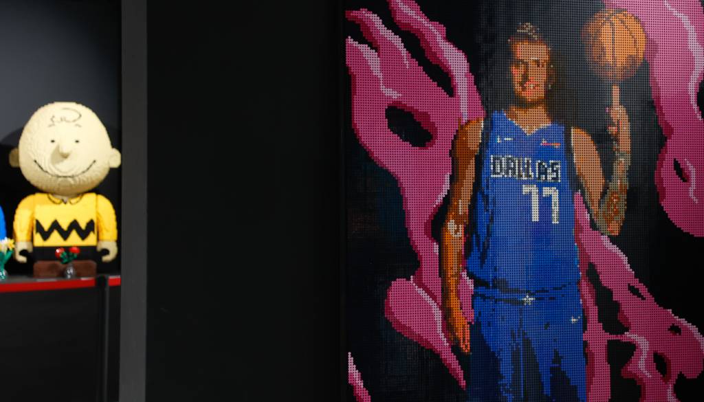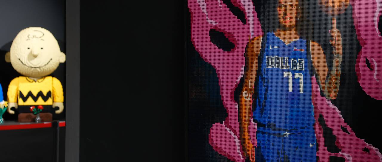 Posebna atrakcija razstave je slika košarkarja Luke Dončića, izdelana iz Lego kock, ki so jo razkrili danes.