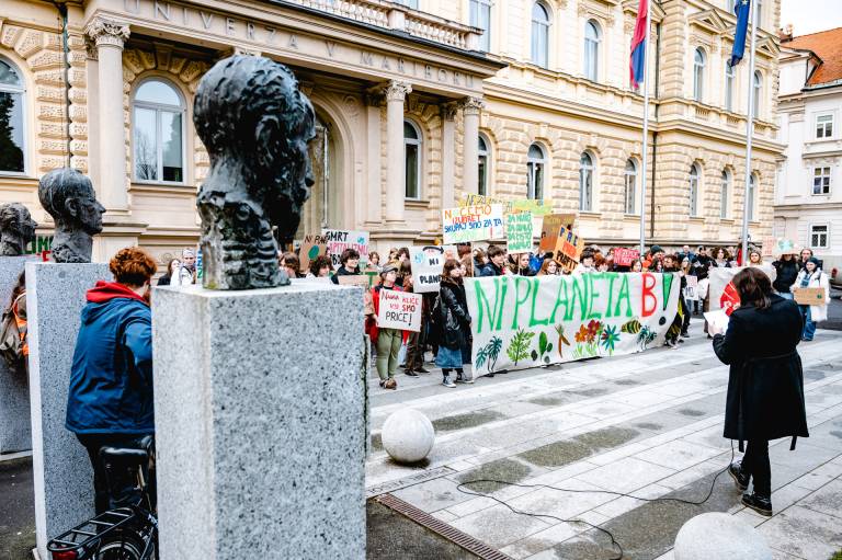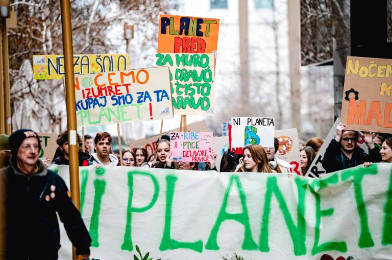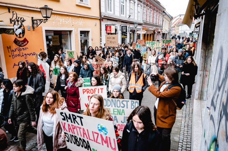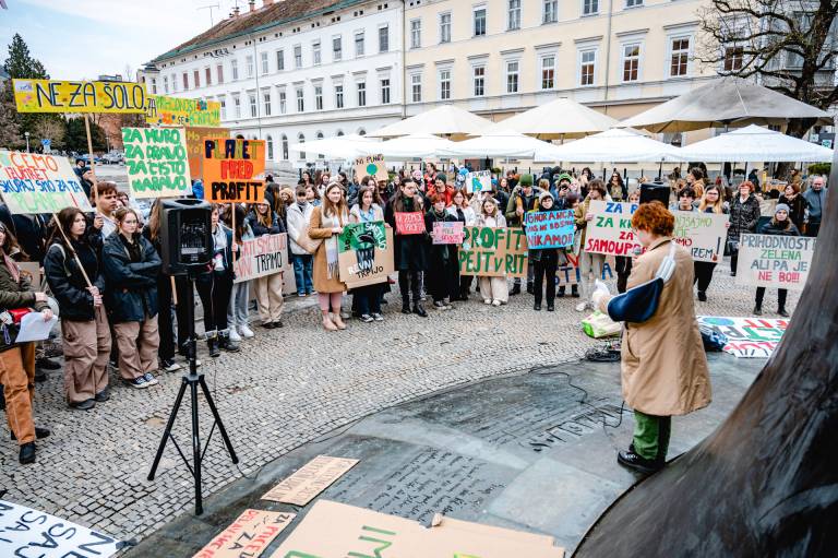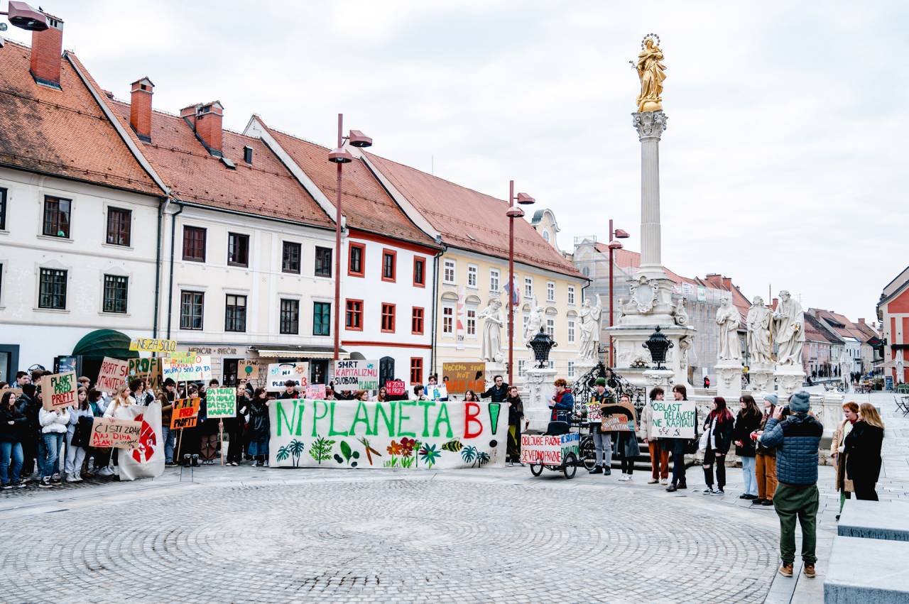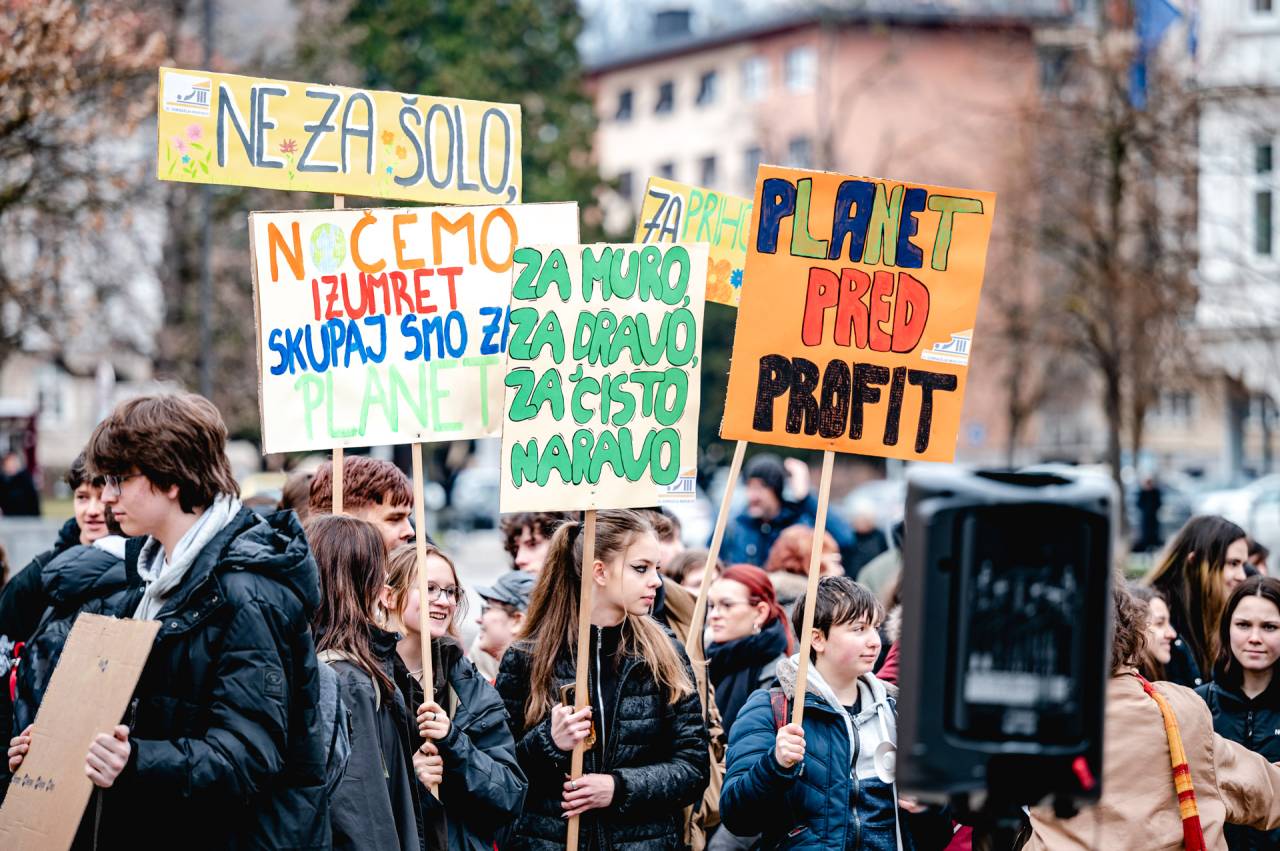 Mladi za podnebno pravičnost s podnebnim protestom znova zahtevajo zeleni prehod in podnebno pravičnost.
