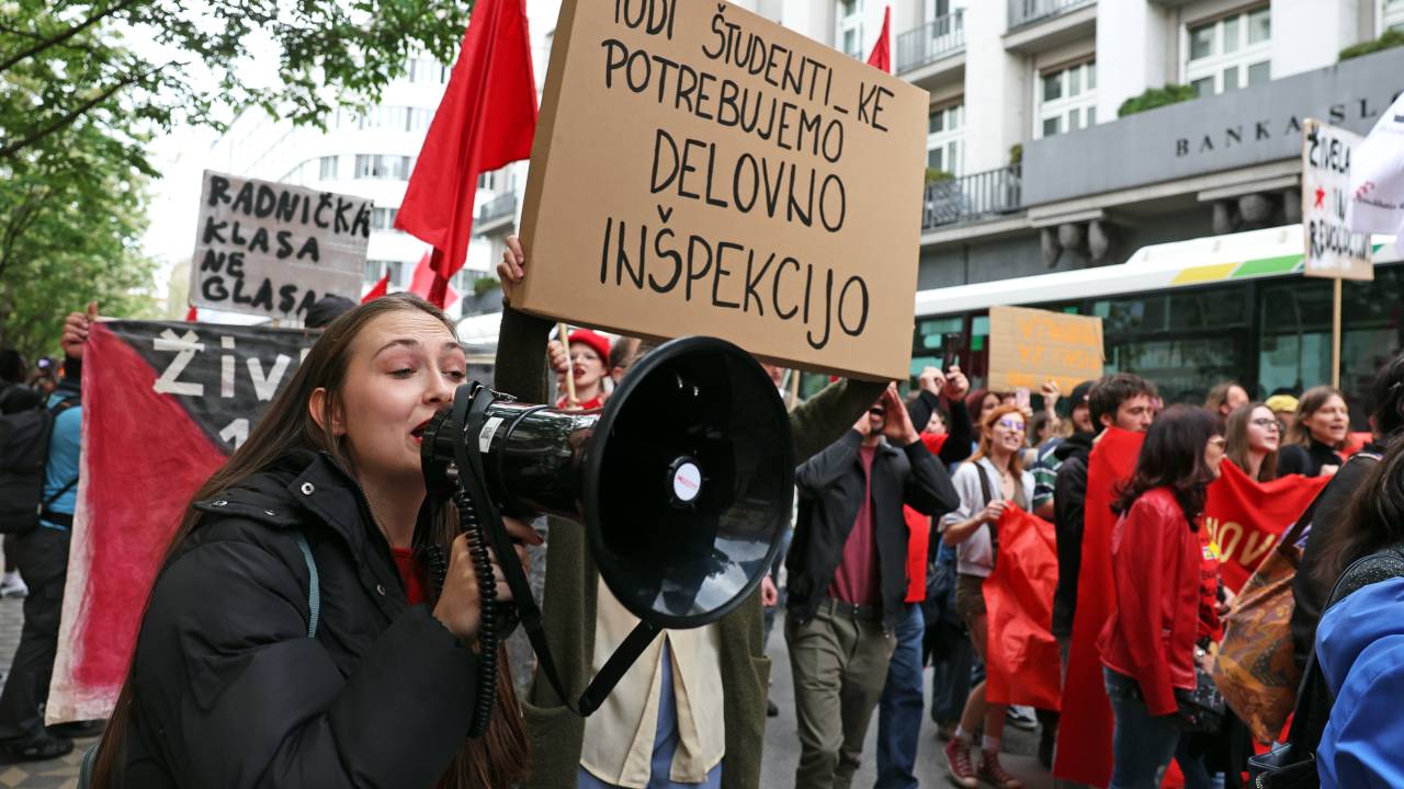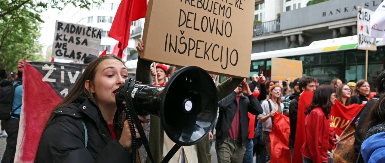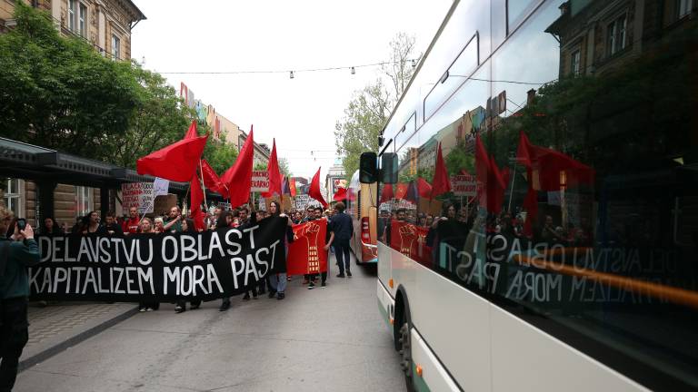 Na Kongresnem trgu v Ljubljani je bil danes delavski protest, ki so ga pripravili v sindikatih Mladi plus in Zasuk, društvu Iskra in Centru za družbeno raziskovanje - Cedra. Potekal je pod geslom Prvi maj delavstvu nazaj!