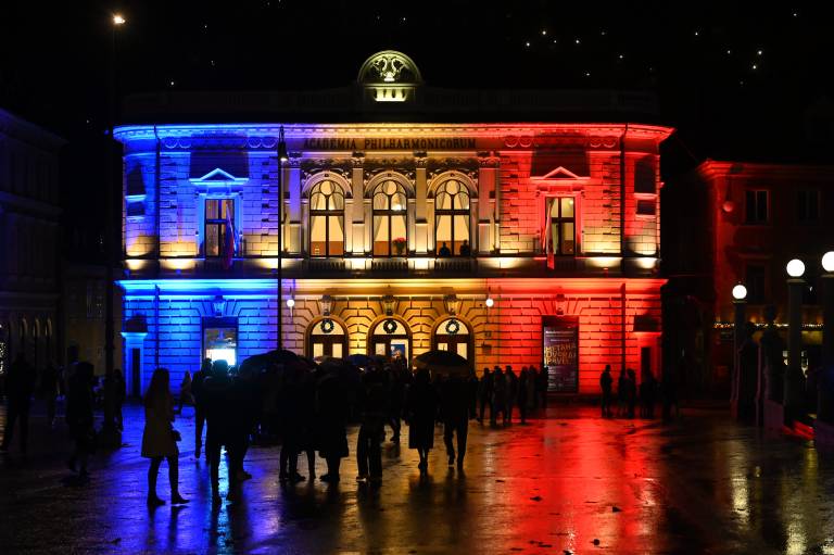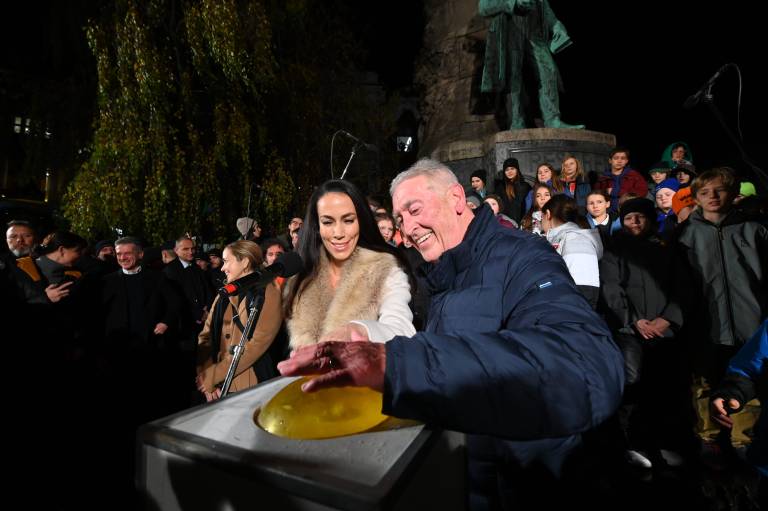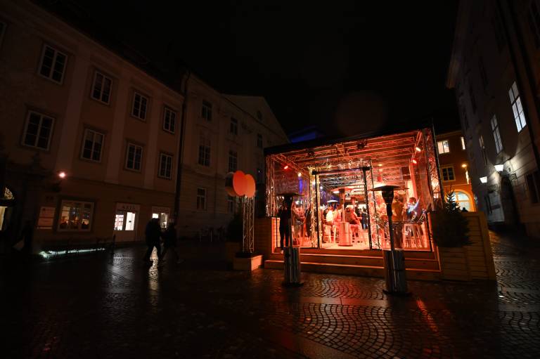 Naslov letošnje novoletne okrasitve, katere avtor je Urban Modic, je »Oni smo mi«. Kot smo poročali, nas želi z njo opomniti, da smo danes staroselci, že jutri morda begunci. Danes smo Zemljani, nekoč morda tudi Marsovci.