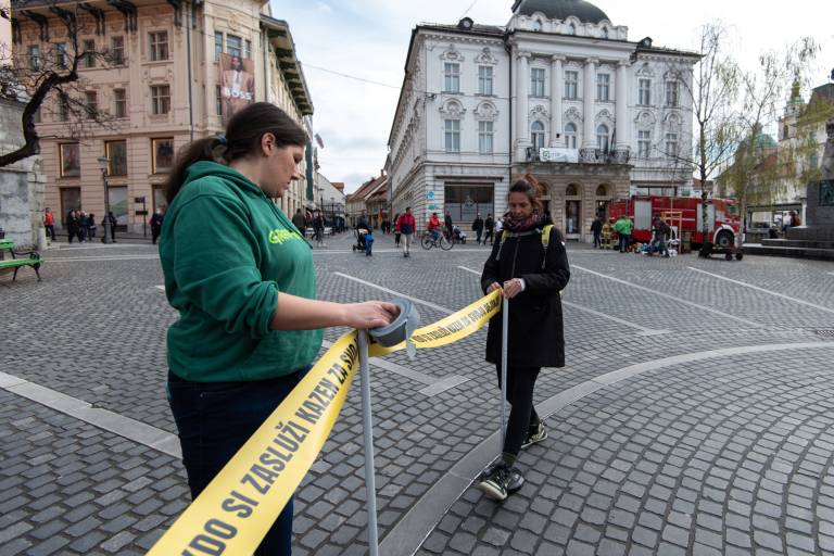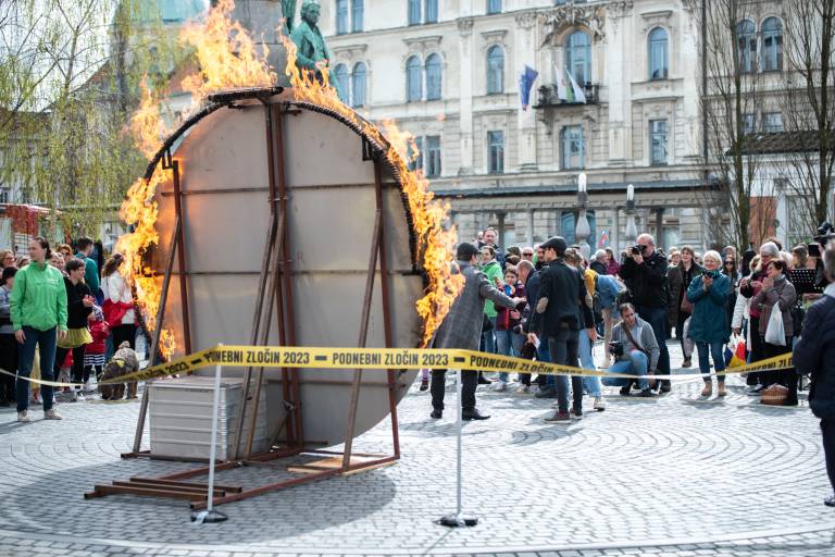 Z izvedbo te akcije in spremljajočim uličnim performansom so otvorili kampanjo Podnebni zločin.