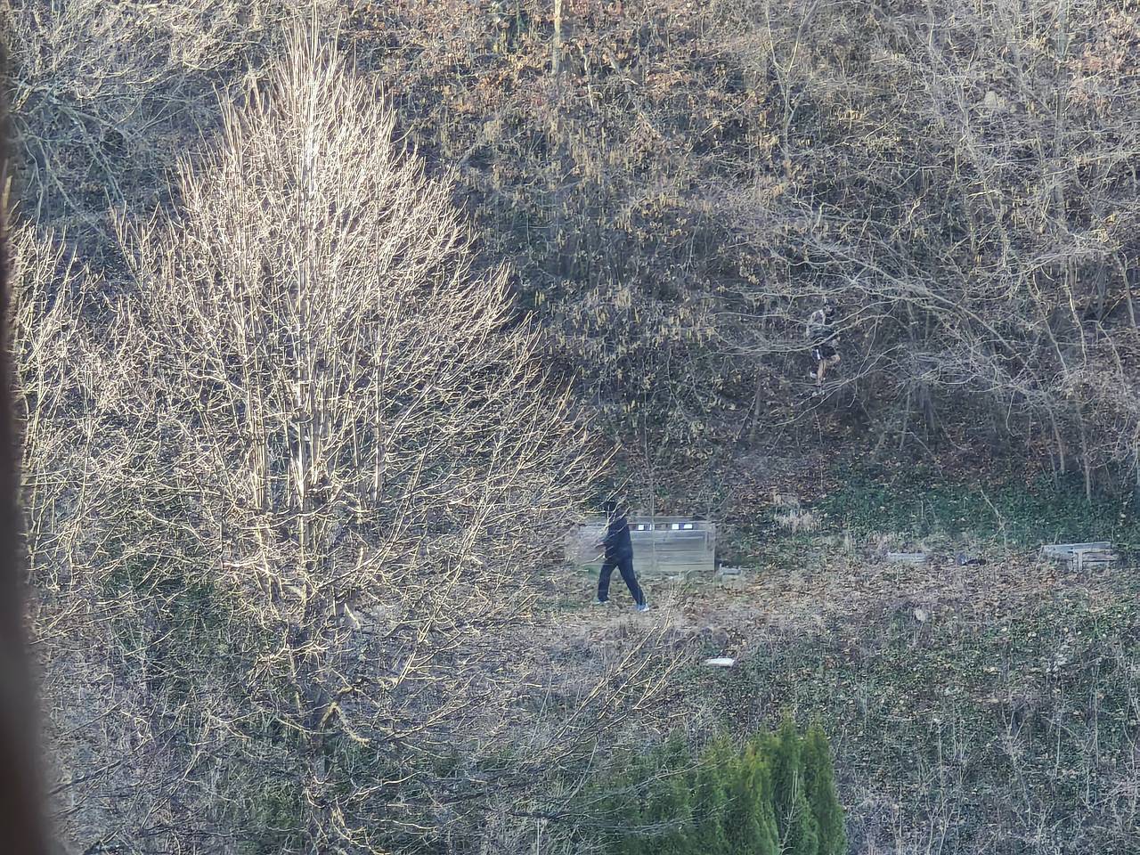 Storilci so se s palicami spravili nad rolete in povzročali hrup, medtem ko so z vrhnjega dela območja, kjer se še nahaja del vrtička, metali večje kamne na streho objekta.