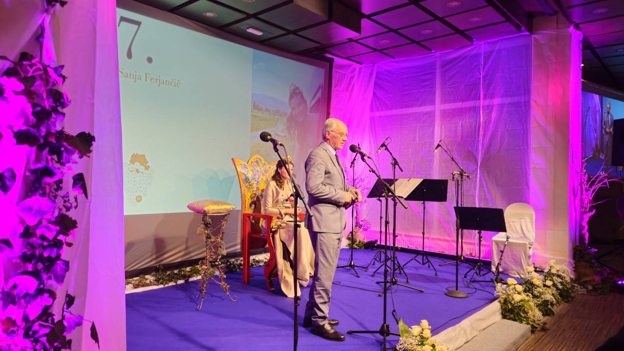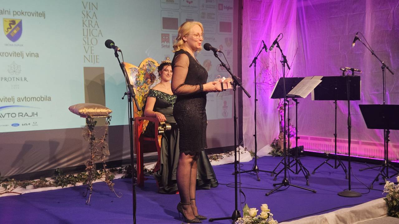 Posebna gostja večera, Sanja Ferjančič, dosedanja vinska kraljica Slovenije, se je s čustvenim nagovorom poslovila od svojega kraljevanja.