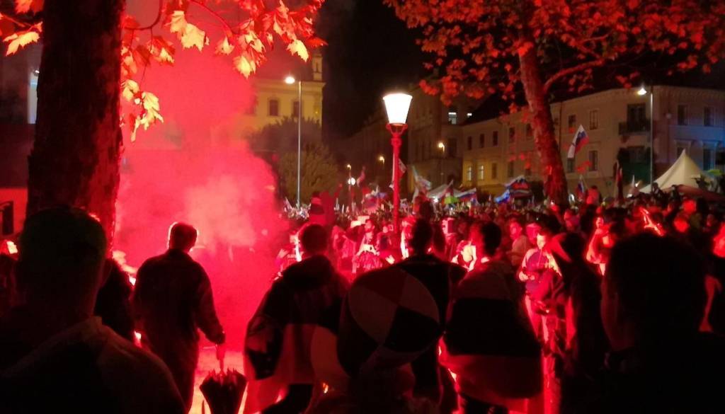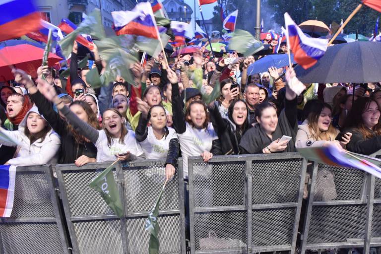 Na Kongresnem trgu v Ljubljani se je zbrala rekordna množica navijačev, ki je nestrpno pričakovača prihod košarkarskih junakov.