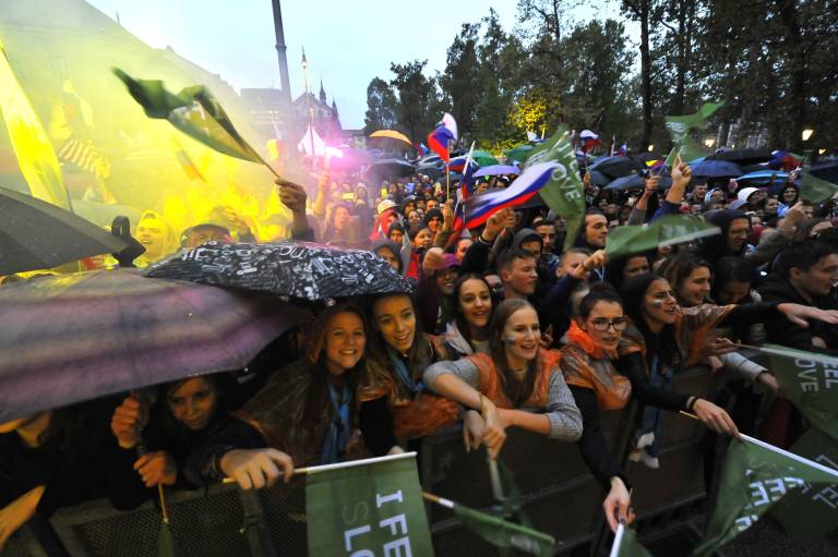 Na Kongresnem trgu v Ljubljani se je po ocenah zbralo rekodno število navijačev - okoli 20.000 ljubiteljev košarke, ki so napeto čakali na prihod evropskih prvakov. Z zastavami in navijaškimi rekviziti v rokah so kljubovali dežju, vročica pa s pesmijo in navijaškimi vzkliki iz minute v minuto naraščala. Vse dokler se težko pričakovani košarkarji nekaj po 20. uri niso pridružili zvestim navijačem.
