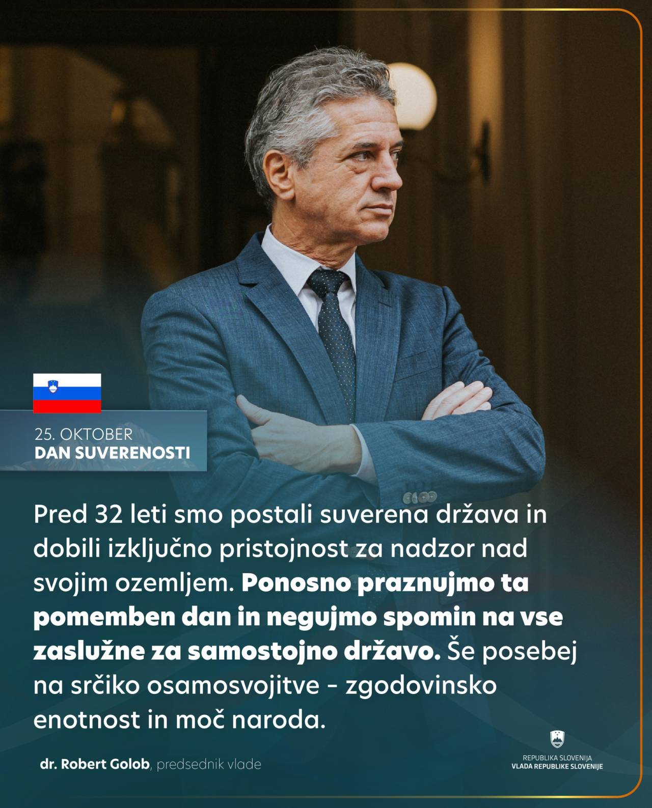 »Ponosno praznujmo ta pomemben dan in negujmo spomin na vse zaslužne za samostojno državo. Še posebej na srčiko osamosvojitve – zgodovinsko enotnost in moč naroda,« dodaja predsednik vlade Robert Golob.