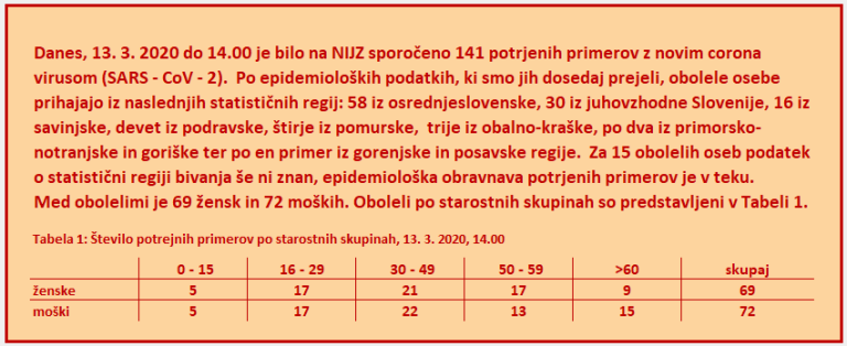 Klicni center za podajanje informacij o novem koronavirusu na številki 080 14 04 je v četrtek sprejel skoraj 1000 klicev. Med obolelimi je 69 žensk in 72 moških, od kje prihajajo?