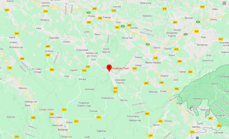 Hudičev turn spada v sklop tamkajnšnjega dvorca Soteska, v naselju Soteska v občini Dolenjske Toplice.