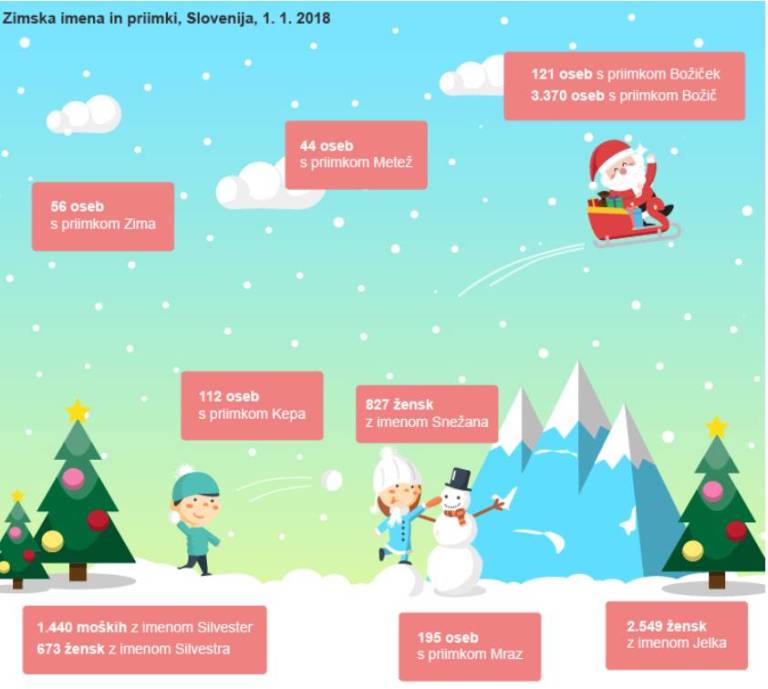 »Vsaj 20 odstotkov moških z imeni Silvester, Silvo, Štefan, Miklavž in Nikolaj ter ravno tolikšen delež žensk z imeni Silvestra, Štefanija, Štefka, Silva, Silvija, Nikolaja in Božica ter Otilija, Evica in Viktorija, ki so na začetku leta 2018 živeli v Sloveniji, je bilo namreč rojenih v mesecu decembru,« piše na uradni spletni strani Statističnega urada Republike Slovenije.