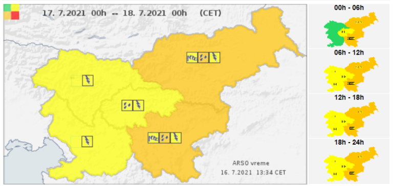 Meteorologi opozarjajo, da so ob tem možna razlivanja hudourniških vodotokov.