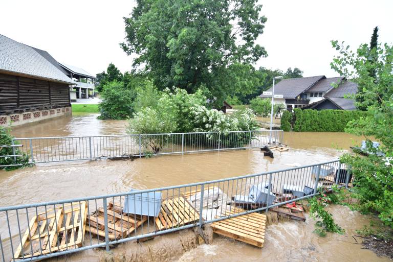 Poplavlja tudi Mura, a zaenkrat znotraj protipoplavnih nasipov. Poplavljanje hudournikov gre pričakovati še tekom popoldneva in v noči na soboto, umiranje razmer pa šele v nedeljo.