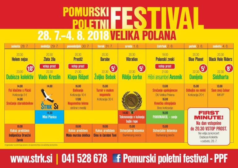 Društvo Štrk Slovenija predstavlja celotno vsebino Pomurskega poletnega festivala, ki bo v Veliki Polani potekal od 28. julija do 4. avgusta 2018, že 23. leto zapored in bo v osmih dneh združil ljubitelje najrazličnejših glasbenih žanrov, športne in kulinarične navdušence, najmlajše obiskovalce in nasploh vse tiste, ki znajo užiti življenje ter izkoristiti priložnost za nepozabna poletna doživetja.