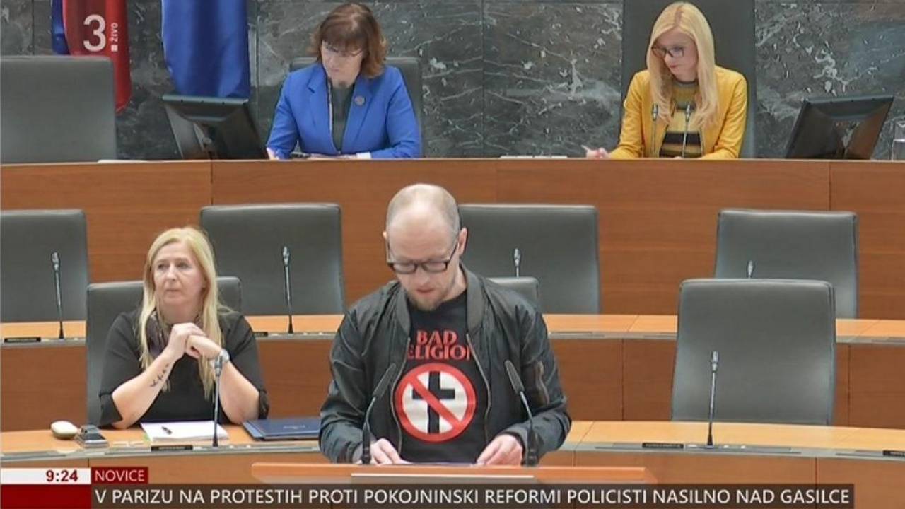 Na sejo državnega zbora je poslanec Primož Siter prišel v majici z logotipom skupine Bad Religion.