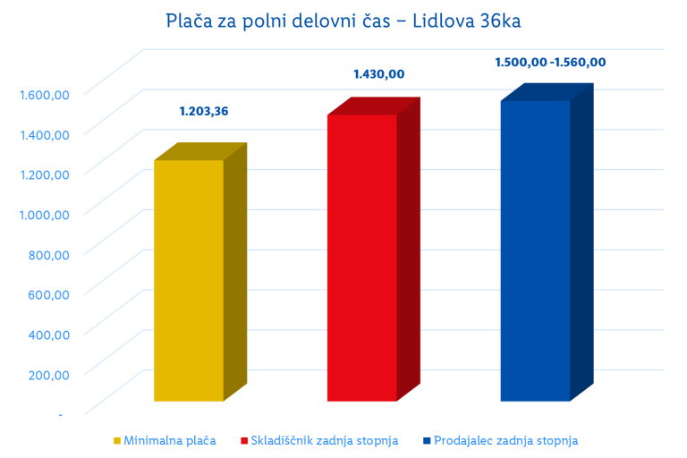Lidl Slovenija že vrsto let ponuja nadpovprečno plačilo v trgovinski panogi. Poleg tega pa zaposlenim v prodaji in skladišču plača raste po vnaprej znanih stopnjah, vse do šestega leta zaposlitve.