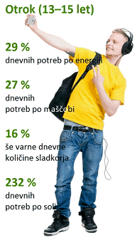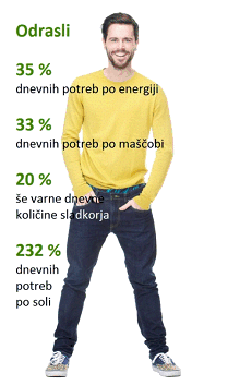Tako odrasli kot otrok zadovoljita z eno pico (310 g) približno tretjino dnevnih potreb po energiji in maščobah ter petino še varne dnevne količine sladkorja, medtem ko dnevno potrebo po soli oba krepko prekoračita.