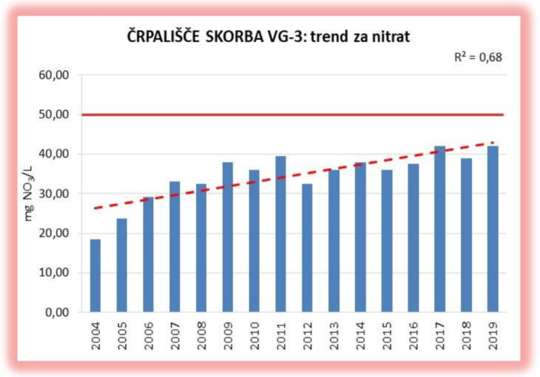 Posebej problematična je vsebnost nitrata na dveh črpališčih pitne vode, in sicer v Skorbi in Šikolah.