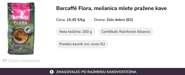 NAJBOLJŠE RAZMERJE KAKOVOST/CENA - Barcaffe Flora