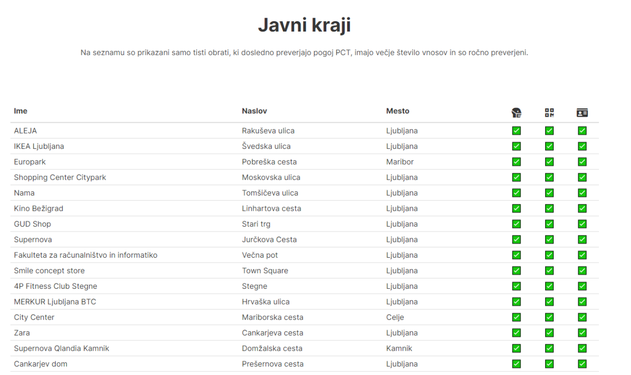 Študenti medicine so vzpostavili spletni portal, kjer lahko ljudje delijo svoje izkušnje v različnih obratih in njihovo temeljitost preverjanja pogoja PCT.