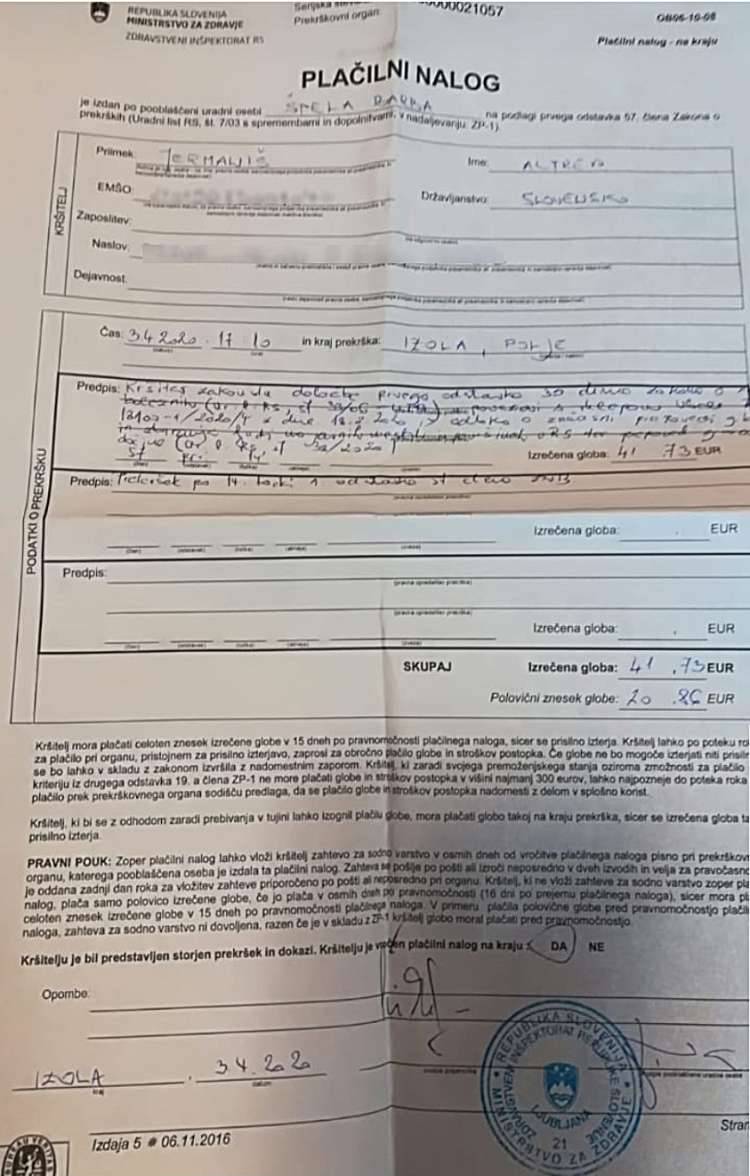 V Sloveniji se v tem času lahko gibamo samo znotraj svoje občine. Izjema so tisti, ki imajo za to potrebna potrdila. Slednjih pa ni imel nekdanji nogometaš Mure, ki je tako moral plačati kazen.
