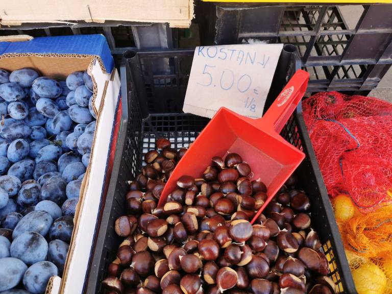 Tudi na mariborskih tržnicah ne odštejemo nič več za kilogram kostanja, cena je prav tako pet evrov.