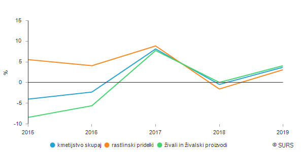 Po podatkih Statističnega urada Republike Slovenije so bile lani cene kmetijskih pridelkov pri pridelovalcih povprečno za 3,7 odstotka višje kot v letu 2018.