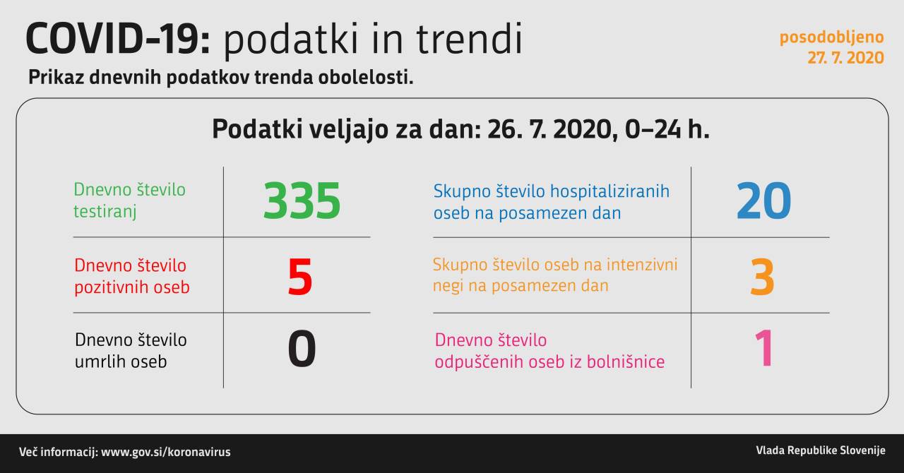 Včeraj, 26. julija, so V Sloveniji so včeraj, 26. julija, opravili 335 testiranj za novi koronavirus.