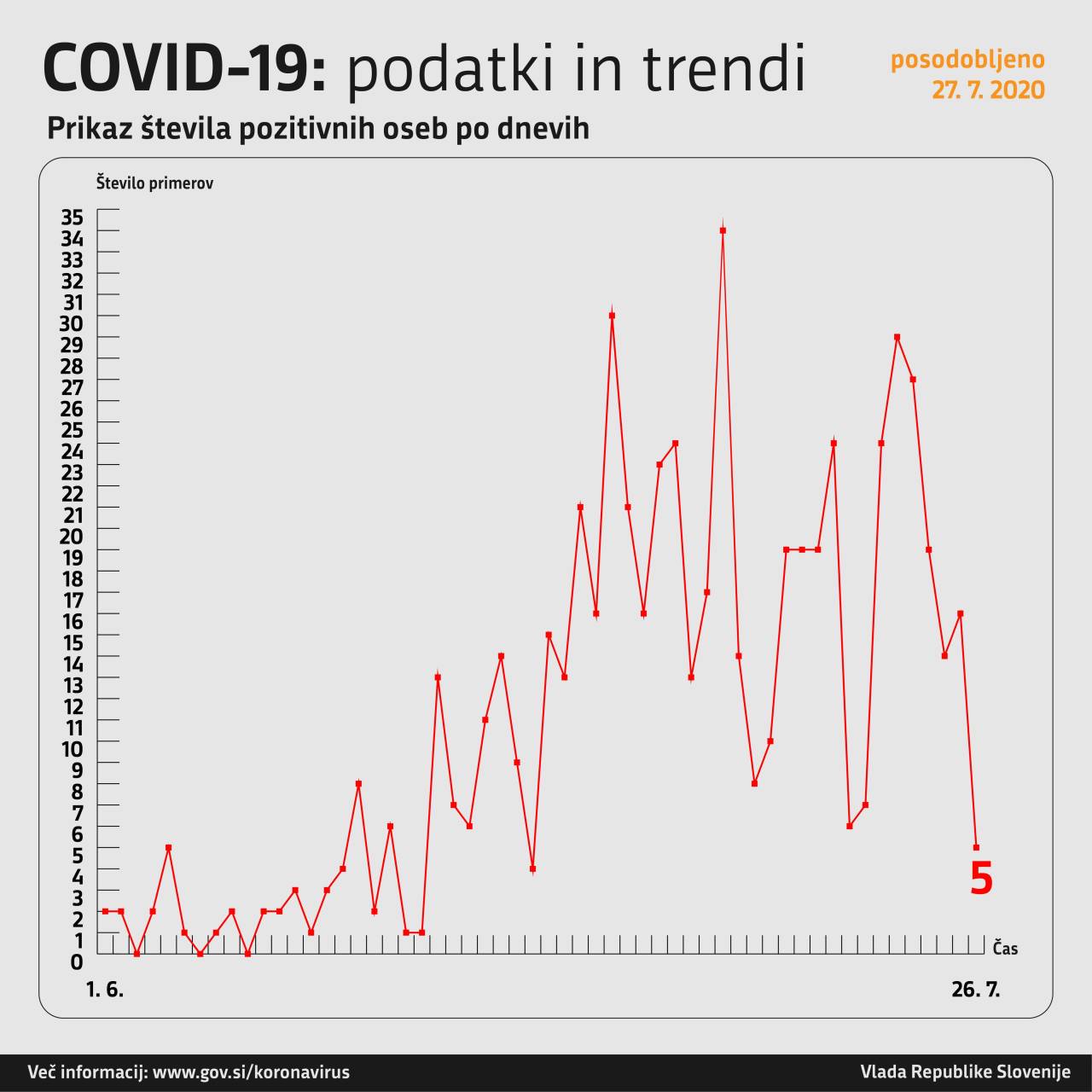 Odkritih je bilo pet novih okužb s koronavirusom. Za primerjavo: dan poprej je številka znašala 16.