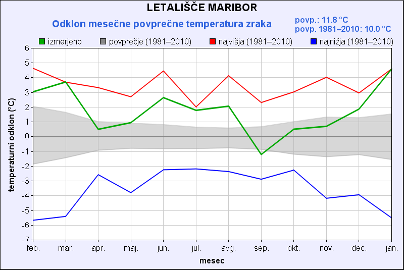 Kot po svetu pa tudi v Sloveniji povprečne temperature naraščajo. Od sredine 70. let prejšnjega stoletja se je v Sloveniji segrelo za približno dve stopinji Celzija. To pomeni, da je zdaj običajno leto dve stopinji toplejše od tistega pred 50. leti. Tako so sedaj celo tista najhladnejša leta, ki jih imamo, primerljiva z najtoplejšimi leti, ki smo jih imeli pred 50, 60 in več leti, je za STA dejal Vertačnik.